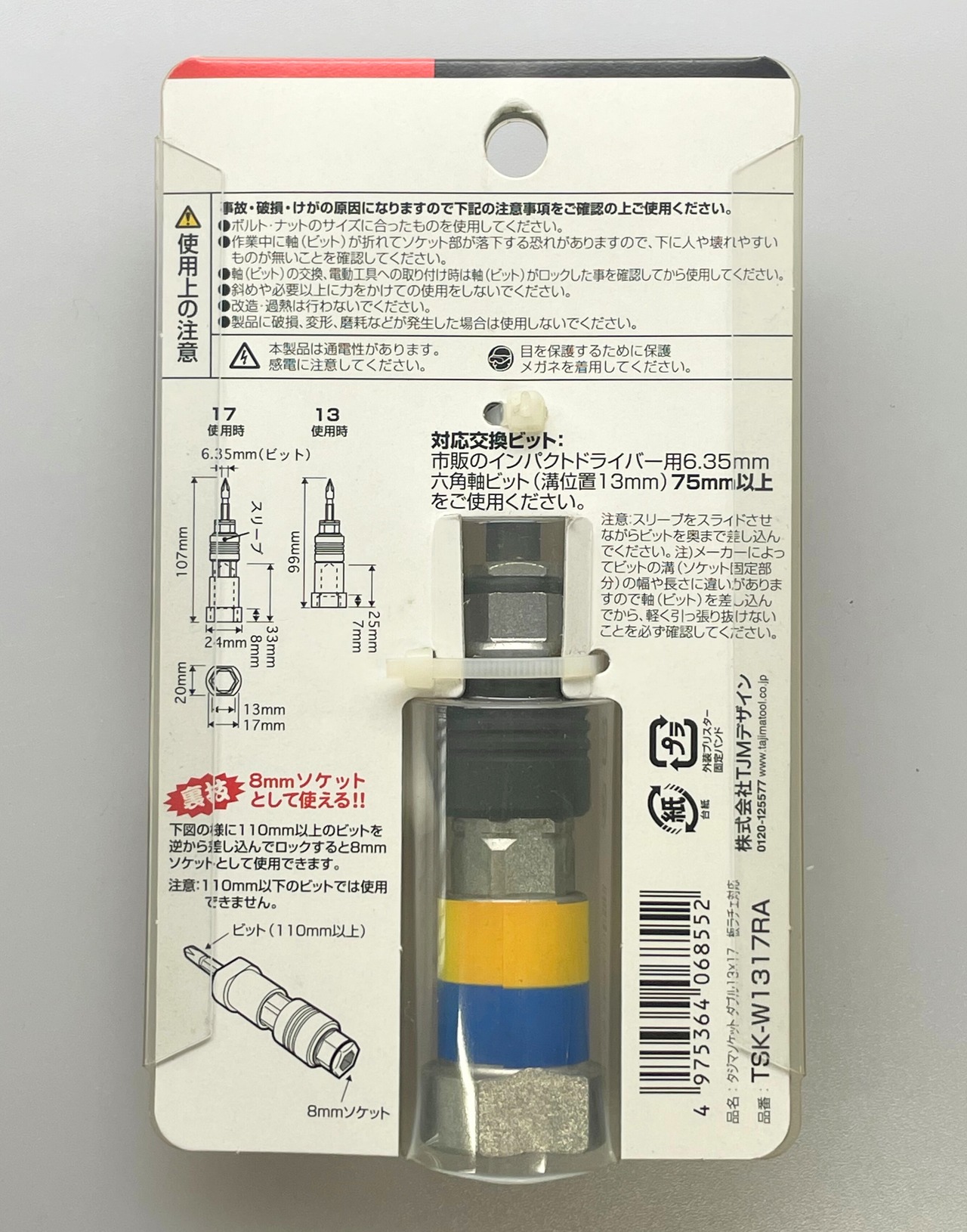 【新古品】ビット交換ソケット ダブル 13x17㎜ 6角 板ラチェ対応(タジマ)